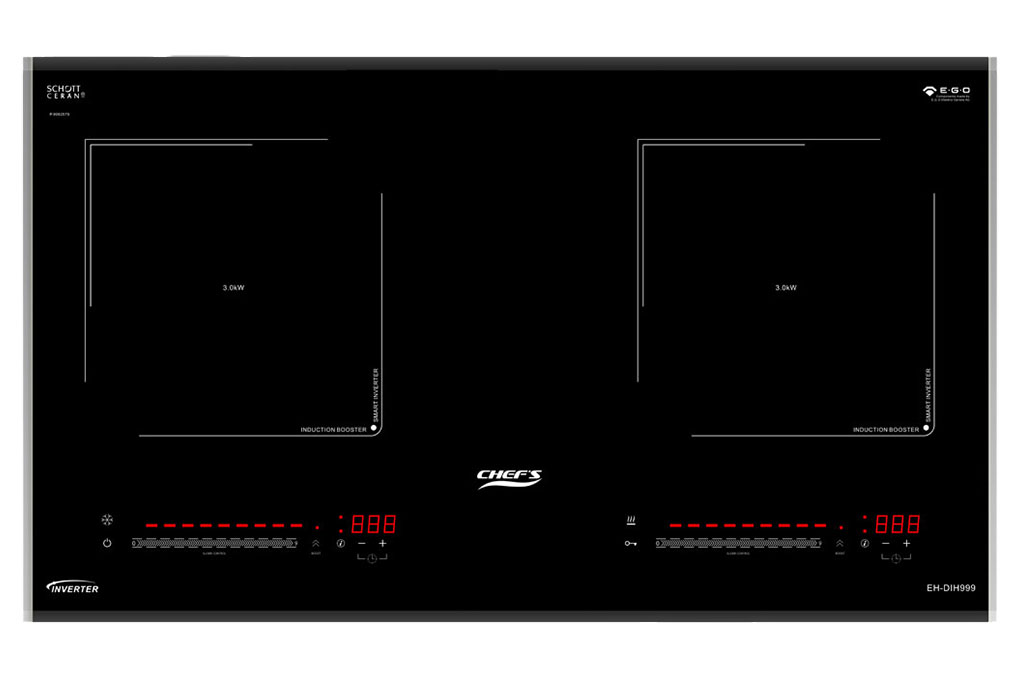 Bếp từ đôi Chef’s EH-DIH999 được trang bị chức năng hẹn giờ riêng cho từng vùng nấu, với thời gian hẹn lên đến 9 giờ 59 phút. Chỉ cần cài đặt thời gian phù hợp, bếp sẽ tự động tắt khi kết thúc, giúp bạn yên tâm nấu nướng mà không cần đứng canh, tránh tình trạng món ăn bị cháy hay khét.