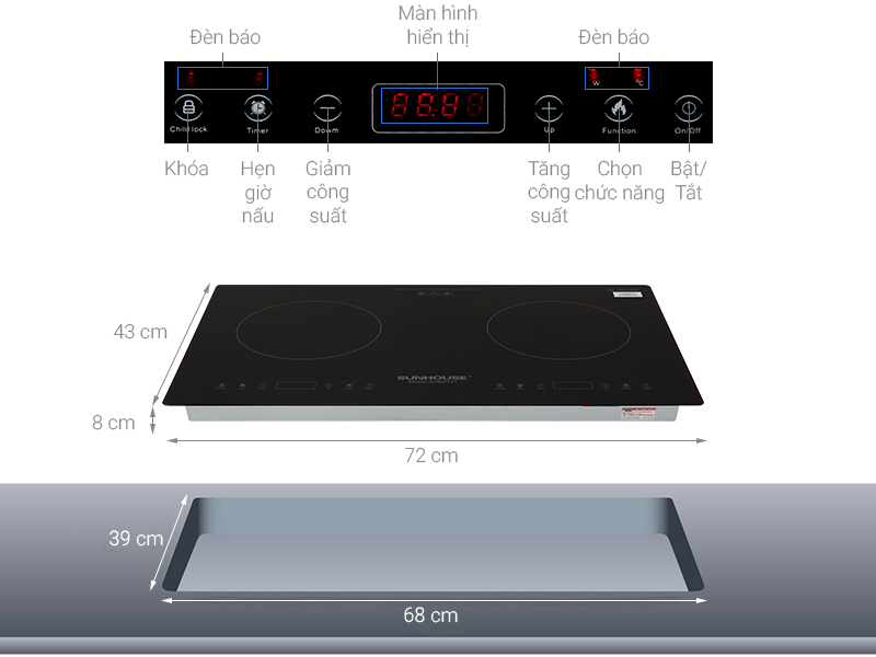 Bếp từ đôi lắp âm Sunhouse SHB9101