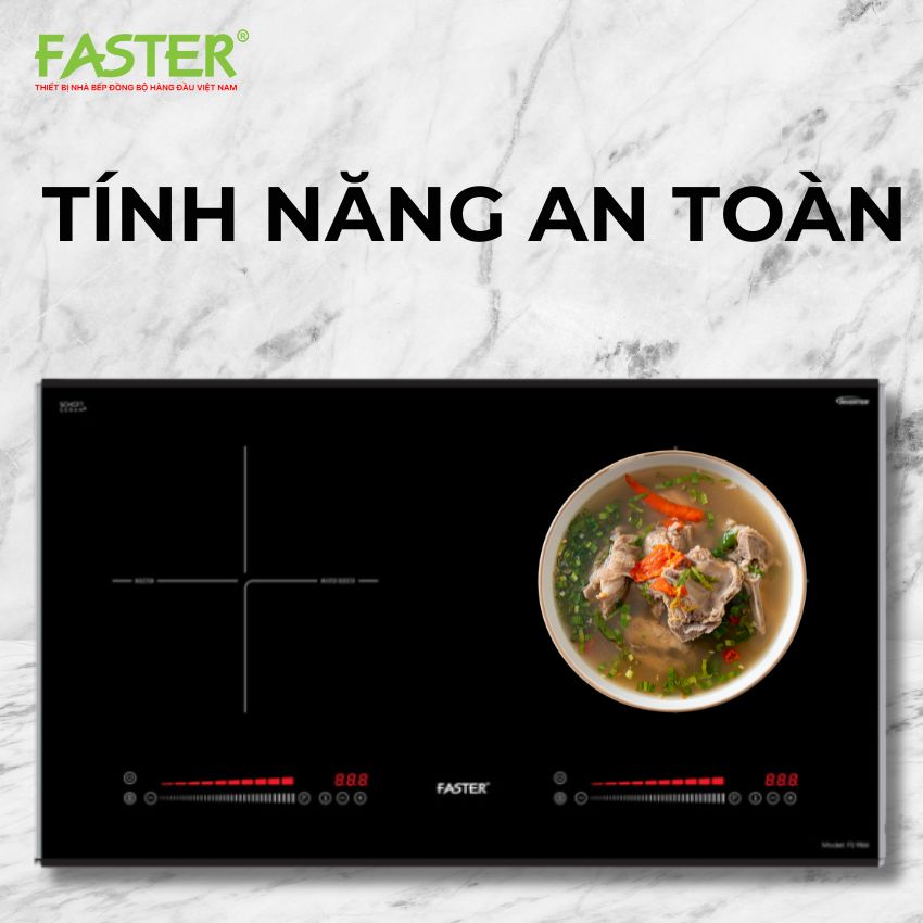 Một trong những đặc điểm tiên quyết luôn được thương hiệu Faster chú trọng, đó chính là yếu tố an toàn. Dưới đây là 1 số tính năng an toàn của bếp từ FS 986I mà bạn có thể tham khảo.