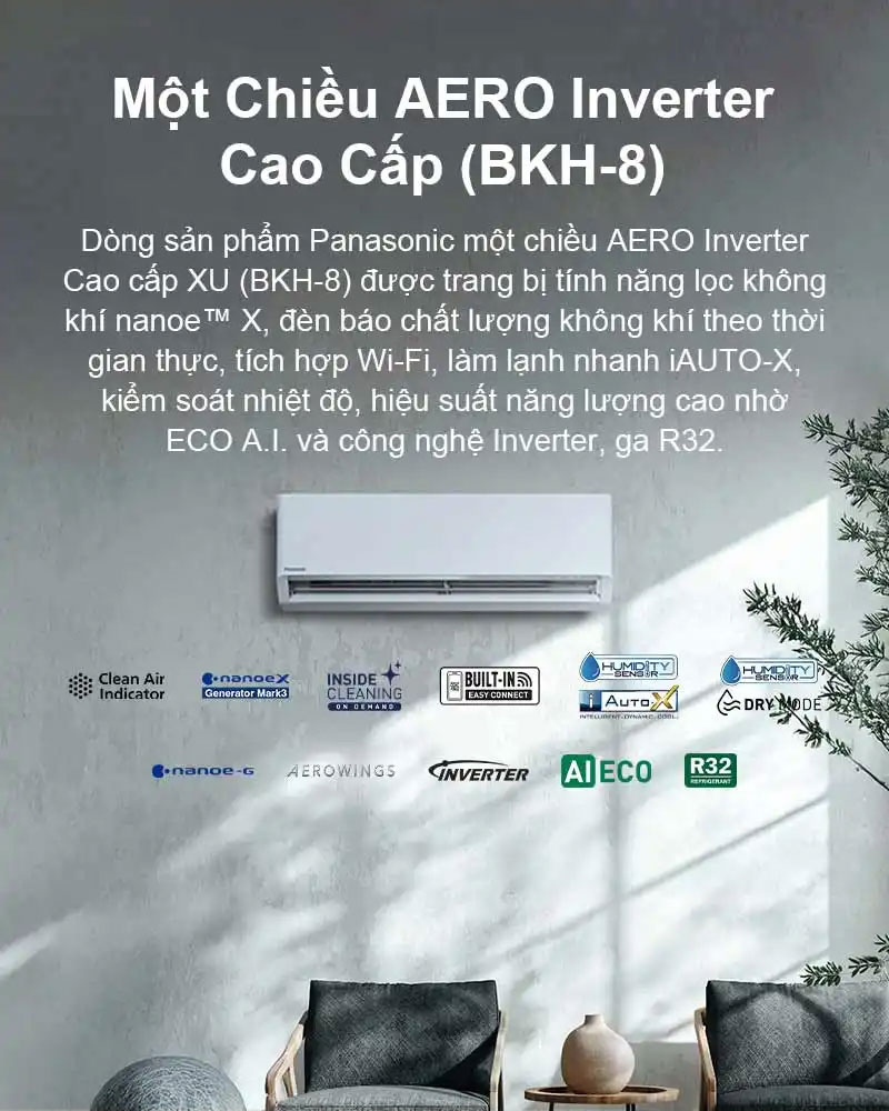 Điều hòa Panasonic 1 Chiều Inverter 9.550Btu/1HP CS-XU9BKH-8 là sự lựa chọn hoàn hảo cho những ai đang tìm kiếm một thiết bị làm mát hiệu quả, tiết kiệm điện và bảo vệ sức khỏe. Với hàng loạt công nghệ hiện đại như Inverter, iAuto-X, Nanoe-G và Nanoe™ X thế hệ 3, sản phẩm không chỉ mang lại không gian mát lạnh nhanh chóng mà còn giúp duy trì bầu không khí trong lành, an toàn cho cả gia đình.