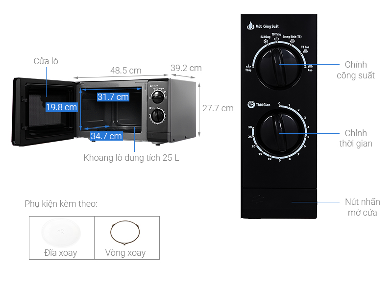 Kích thước khoang lò: Ngang 31.7 cm – Cao 19.8 cm – Sâu 34.7 cm