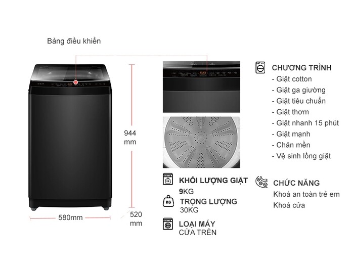 Máy giặt Aqua 9 kg AWM9-316K(B)