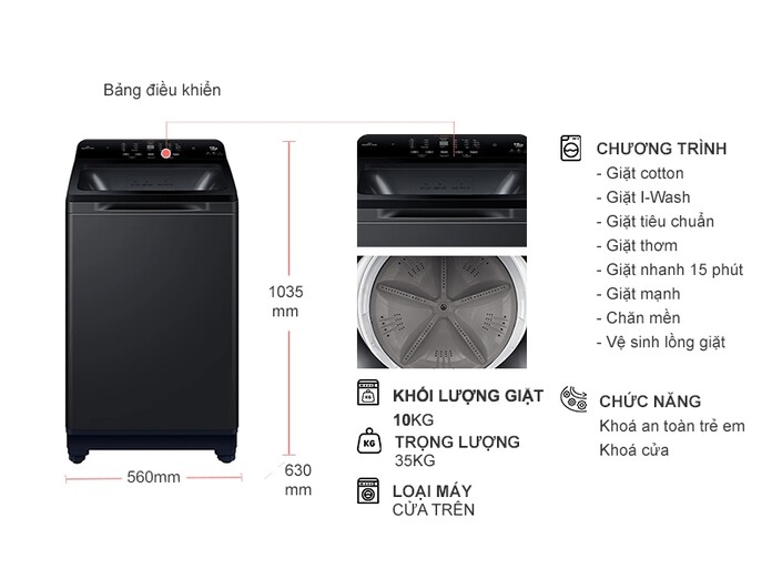 Máy giặt Aqua Inverter 10 kg AQW-DR100JT BK