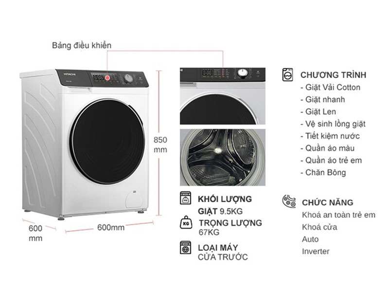 Máy Giặt Hitachi Inverter 9.5 Kg BD-954HVOW – Nâng cấp tổ ấm của gia đình bạn