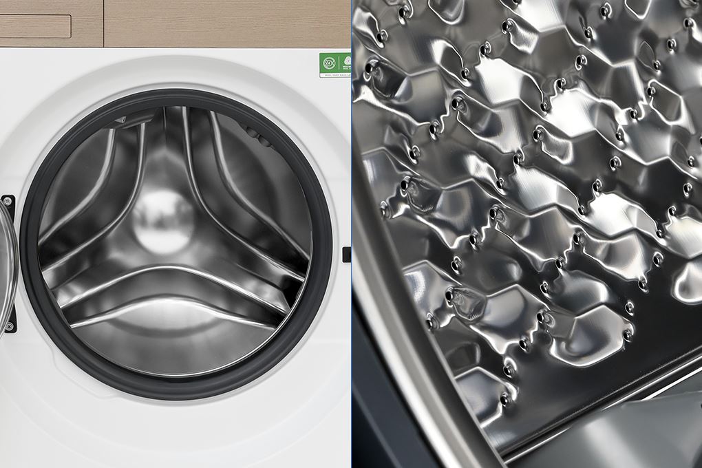 Máy giặt có lồng giặt rộng lên đến 535mm cùng cửa giặt siêu rộng 365mm giúp người dùng dễ dàng cho và lấy đồ giặt mà không gặp khó khăn. Chất liệu khung thép bền bỉ với lớp phủ đặc biệt chống gỉ sét và chống ố vàng, đảm bảo độ bền theo thời gian.