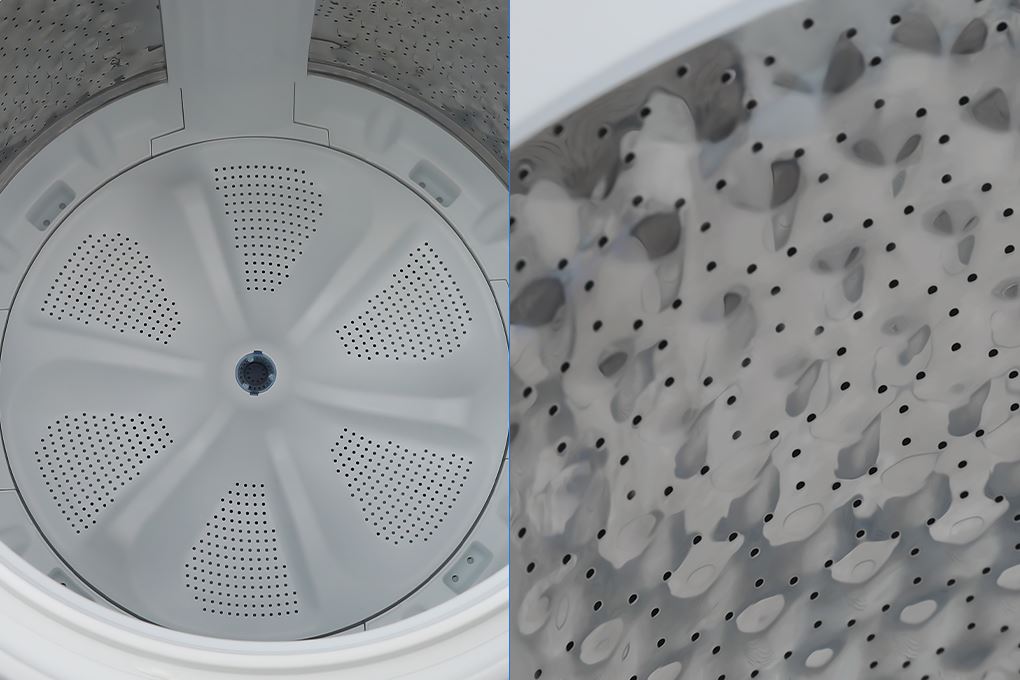Nhờ sự kết hợp này, quần áo được đảo đều liên tục, đánh bay các vết bẩn cứng đầu nhưng vẫn giữ được màu sắc bền đẹp, hạn chế phai màu, co giãn hay hư tổn sợi vải.