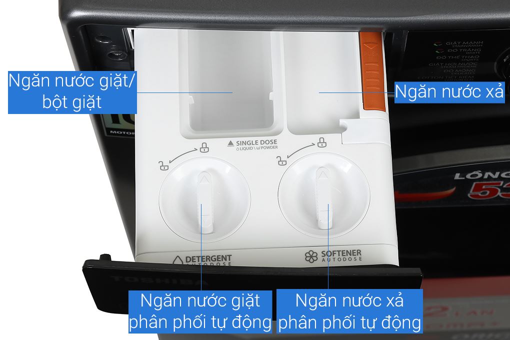 - Tự phân bổ nước giặt và nước xả SenseDose