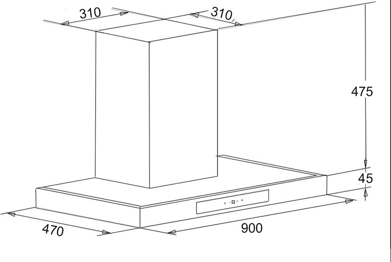 | Kích thước hút mùi (rộng x cao x sâu) | 900x520x470mm |