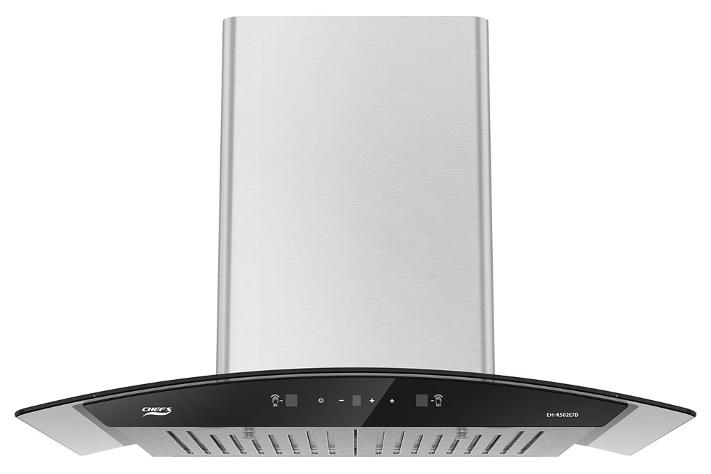 Máy hút mùi CHEF’S EH-R502E7D hình dáng kính cong mềm mại phù hợp với nhiều không gian bếp hiện đại. Chất liệu thân máy làm từ inox cao cấp 430 sang trọng, màu sắc sáng, dễ dàng lau rửa, vệ sinh.