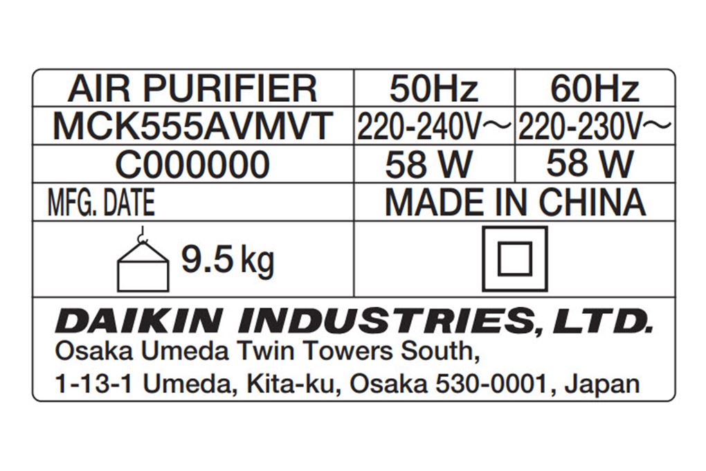 Thông số kỹ thuật Máy lọc không khí Daikin MCK555AVMVT 58W