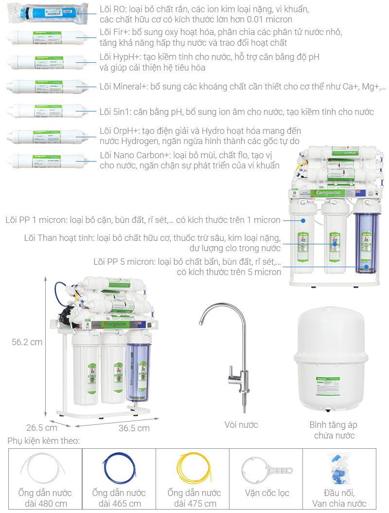 – Lõi Nano Carbon+ (Sx Việt Nam): loại bỏ mùi, flo và tạo vị cho nước, hạn chế phát sinh vi khuẩn hay tái nhiễm khuẩn.