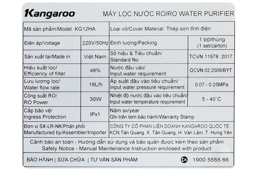 Máy lọc nước RO Hydrogen Kangaroo Sumire KG12HA 12 lõi