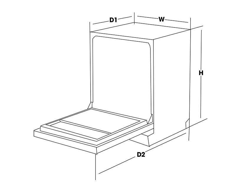 Máy rửa bát EH-DW401EB có kích thước 845x598x628mm, gam màu đen sang trọng, có thể lắp đặt độc lập hoặc âm tủ phù hợp với nhiều không gian bếp.