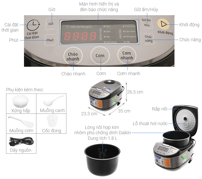 Nồi cơm điện tử BlueStone 1.8 lít RCB-5938