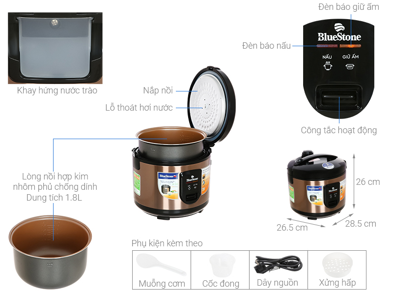Nồi cơm nắp gài BlueStone 1.8 lít RCB-5519