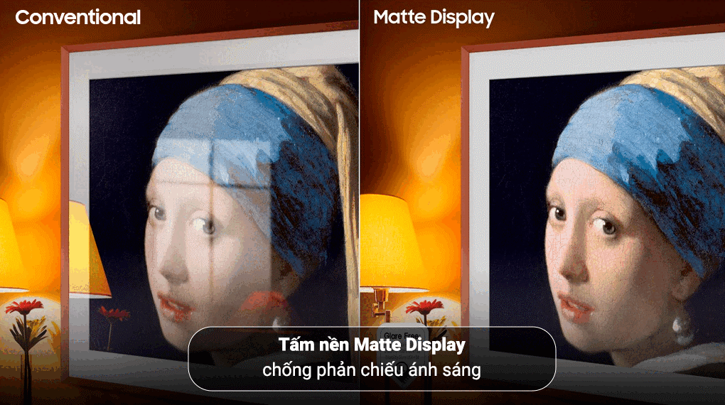 –Công nghệ Matte Displaycho trải nghiệm tranh trọn vẹn hơn với tấm nền chống phản chiếu ánh sáng và công nghệ QLED chất lượng hình ảnh 4K sắc nét.