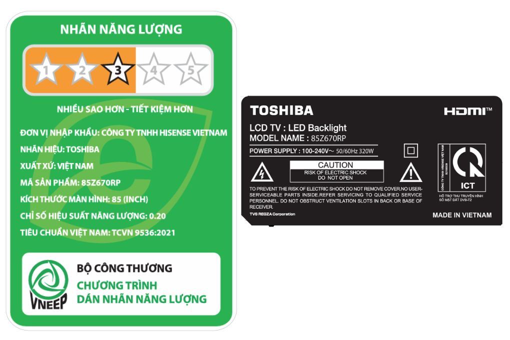 Thông số kỹ thuật Smart Tivi Mini LED Toshiba AI 4K 85 inch 85Z670RP