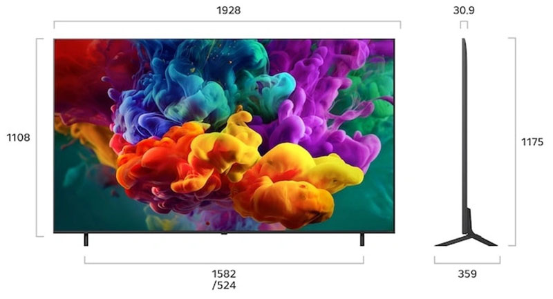 Kích thước có chân, đặt bàn: Ngang 192.8 cm – Cao 119/114.2 cm – Dày 37 cm