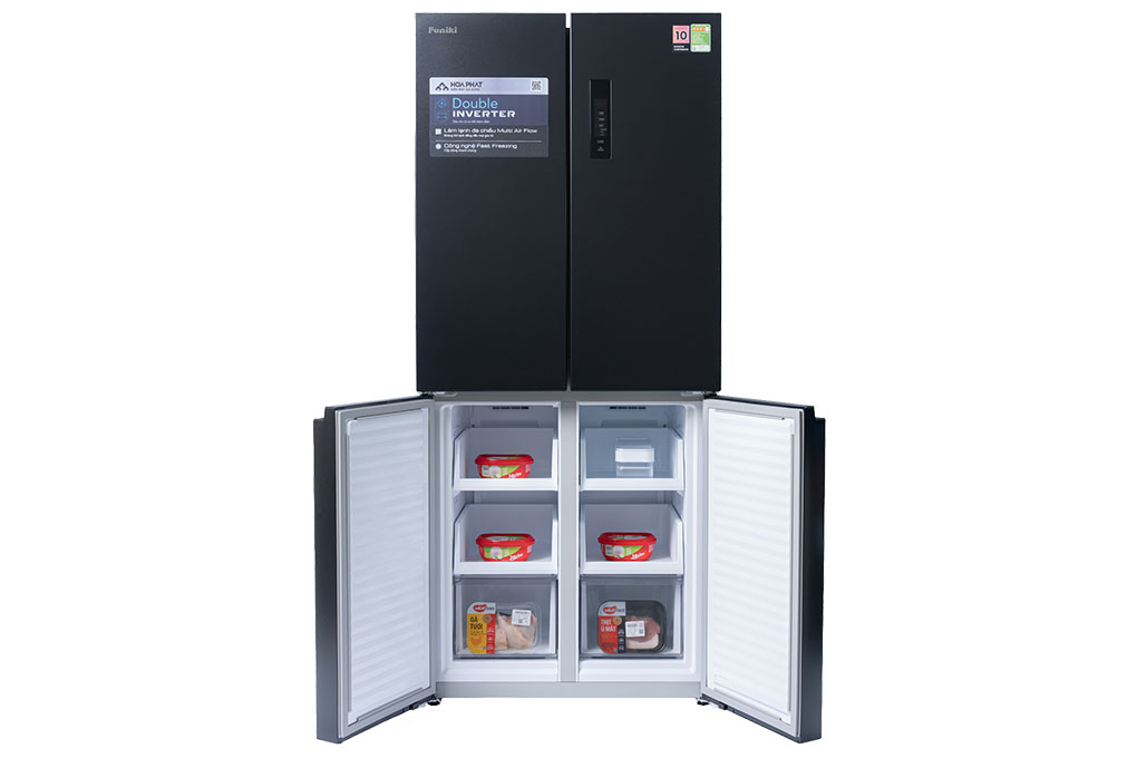 Tủ lạnh Funiki HR M8415SB sở hữu thiết kế Multi Door 4 cánh riêng biệt, giúp người dùng dễ dàng phân loại và bảo quản thực phẩm theo từng ngăn, hạn chế lẫn mùi và giảm thất thoát nhiệt khi mở tủ. Gam màu đen tuyền trung tính vừa sang trọng vừa bền màu, phù hợp với nhiều không gian nội thất từ tối giản đến cao cấp. Thiết kế này còn hạn chế vết bẩn và giữ độ mới lâu dài cho tủ.