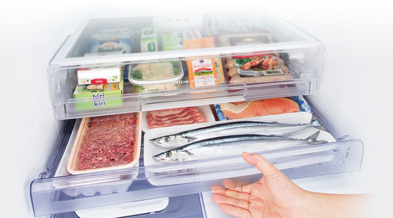 Ngăn mát dạng trượt với nhiệt độ ở mức 0 độ C tiện dụng hơn khi lưu trữ thực phẩm chế biến sẵn hay các chế phẩm từ sữa.